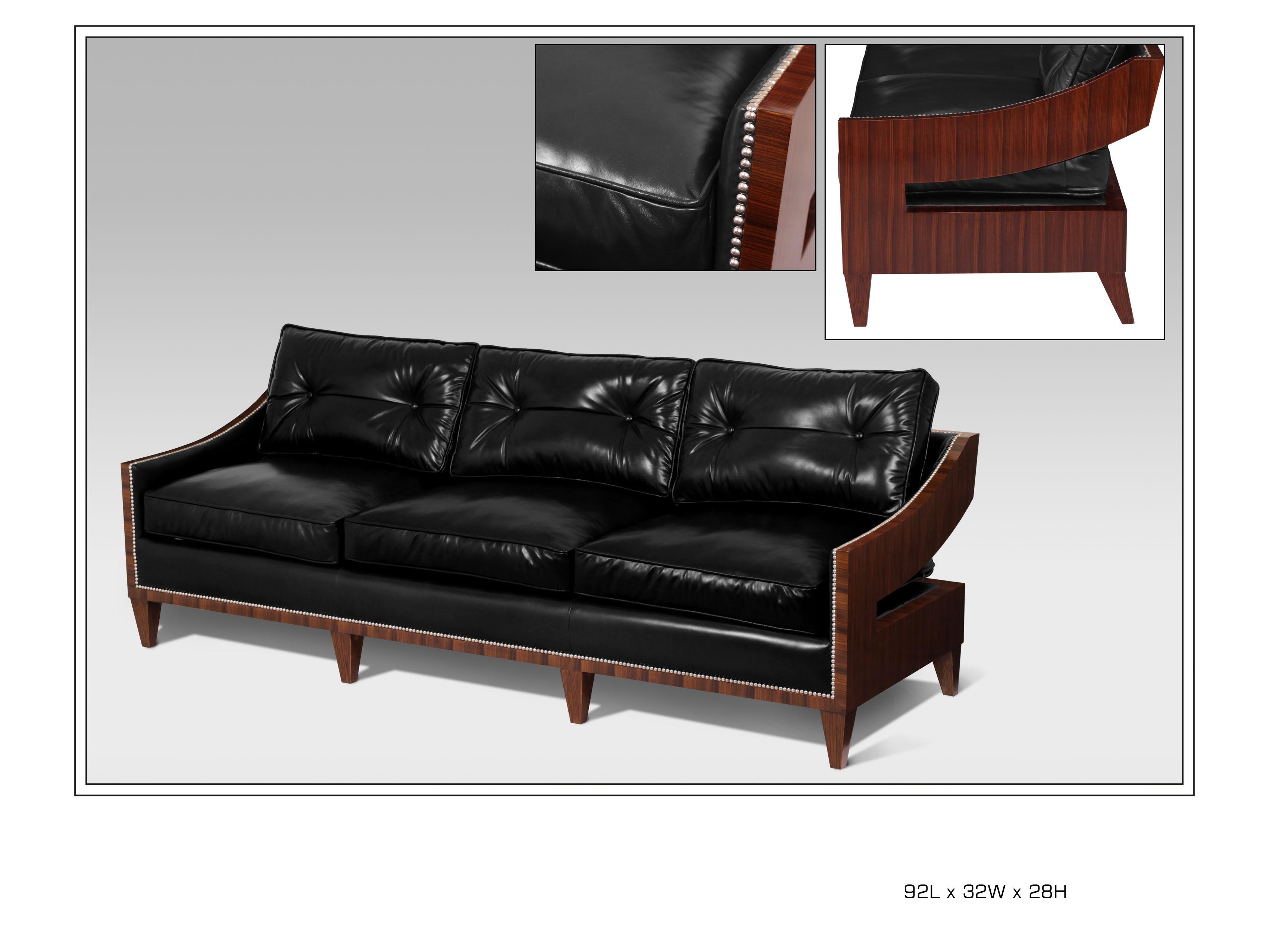 A Contemporary Rosewood and Italian Leather 3 Seater Sofa with Nickel Plated Nails