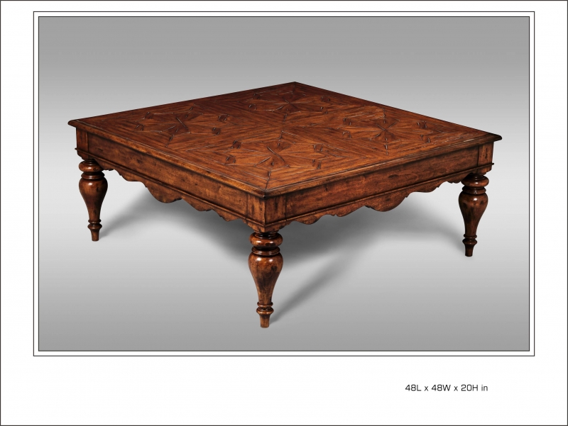Hand Planed Heavily Distressed Parquetry Cocktail Table