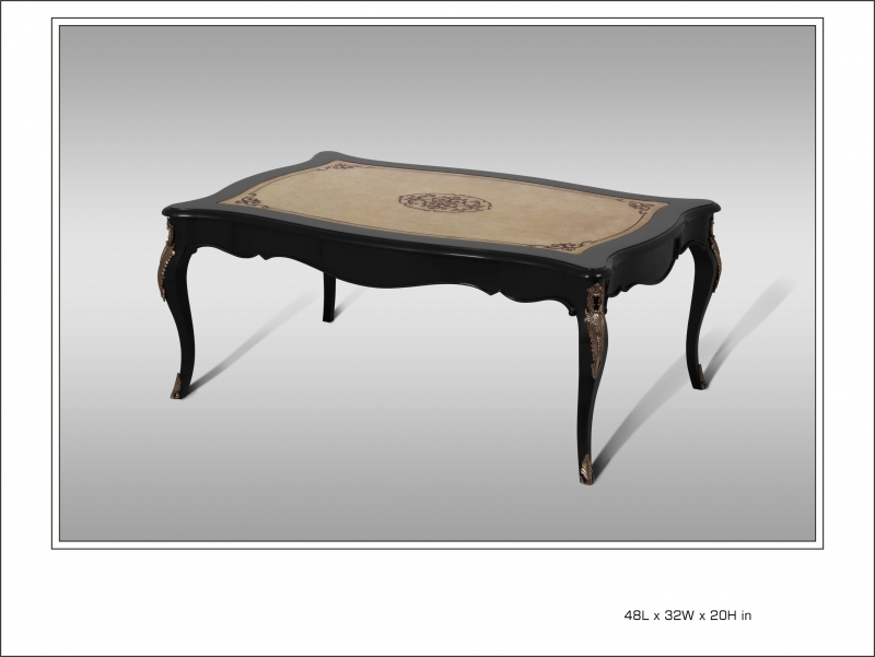 Ebonized Serpentine Cocktail Table with Nickel Plated Brass Accents and a Hand Painted Eglomised Glass Top