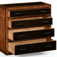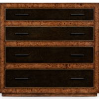 Rustic Burl Oak and Leather Chest of Four Drawers