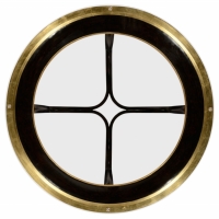 Circular black rub-through lacquer and gilded center table with a glass top, the recessed center creating a sense of depth and a contemporary feel. Inspired by Modernist designs of the 1930's.