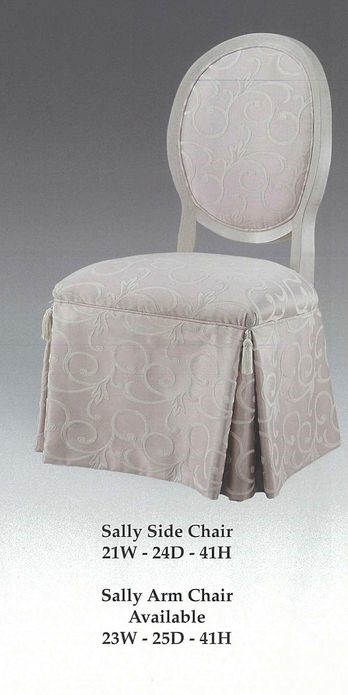 Sally side chair available in various finishes and fabrics. Available as arm chair.