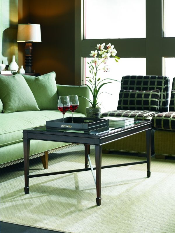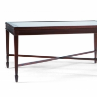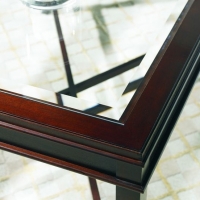 Clean lines and an inset beveled glass top make this a great design to complement many transitional settings.