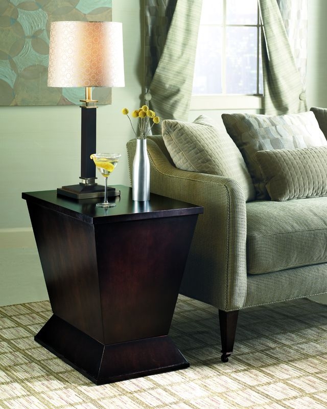 Offset tapers create this boxed end table. Architectural in design and solid in structure. Cherry veneered top and panels.
