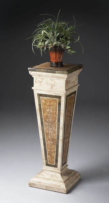 Wood products and fossil stone veneer. Multi-color fossil stone veneers with expertly-crafted inlaid pattern on all four sides.