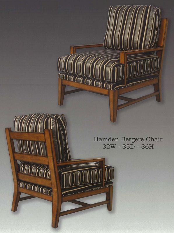 Hamden bergere chair available in various finishes and fabrics.