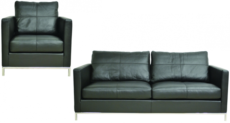 Bronsen Sofa and ChairLeather sofa with stainless bases. Please login to see pricing!