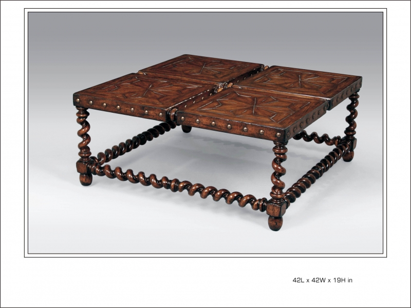 Hand Planed Heavily Distressed Parquetry Cocktail Table