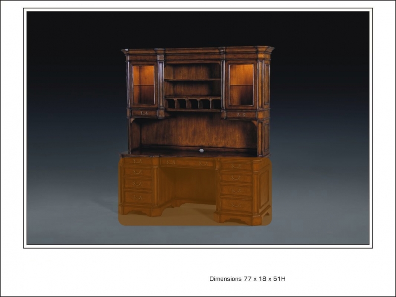 Myrtle Burl Hutch with Touch Dimmer Lighting and Brass Handles