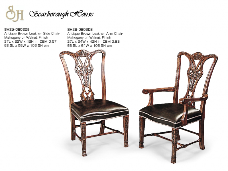 Antique Brown Leather Arm Chair. Mahogany or Walnut Finish.