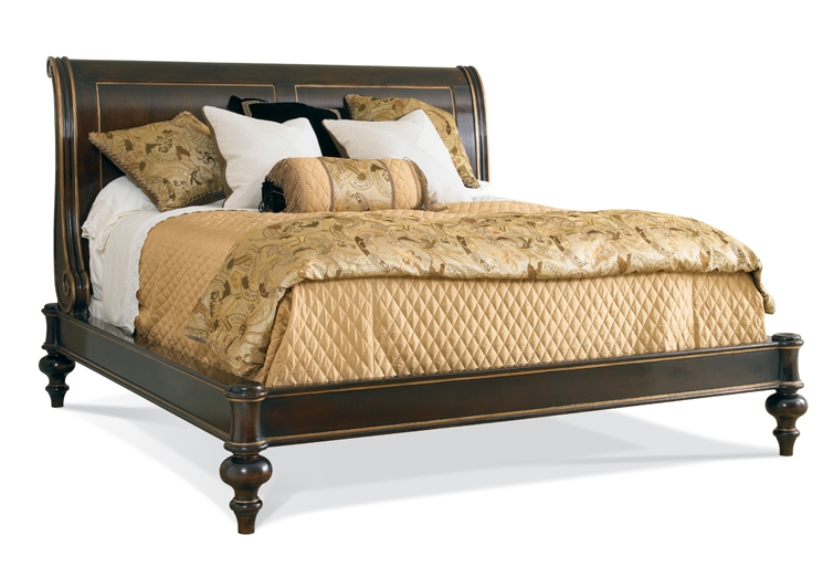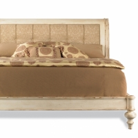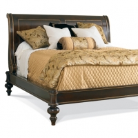 Regency style sleigh bed with turned legs. Available in King and Queen sizes with upholstered and non-upholstered headboard.