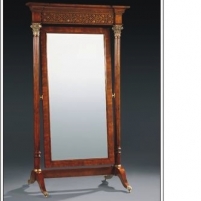 Crotch Mahogany Free Standing Mirror with Brass Accents