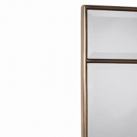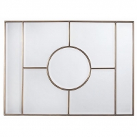No doubt this was geometric inspired…squares, rectangles and a circle all outlined in vintage brass. The mirror is plain with bevels.