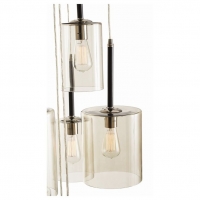 Twelve smoke glass cylinders cascade from an oversized polished nickel ceiling plate. This is a great design for a two story foyer or staircase. Shown with clear Edison bulbs.