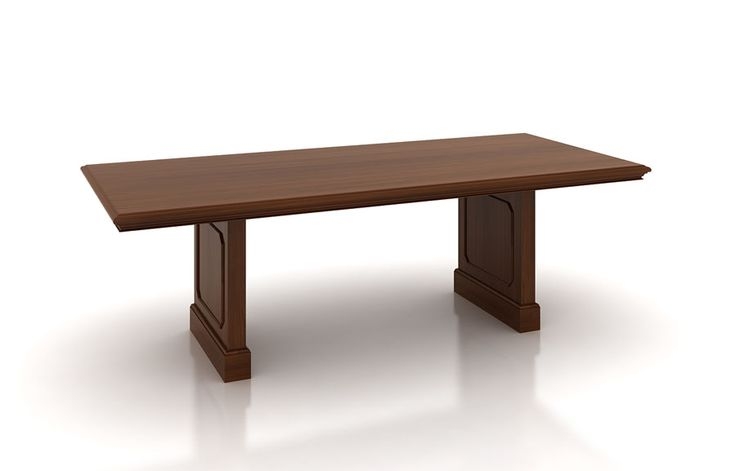Rectangular conference table top with panel bases with panel moulding, one piece top, two panel bases - Chair arm clearance (27 1/4”)