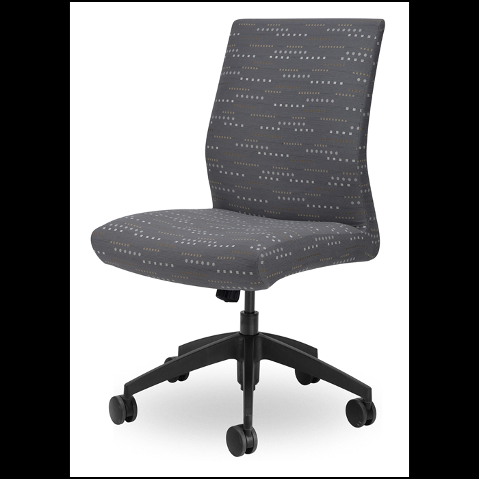 Contemporary chair with swivel tilt. Available in various fabrics and with knee tilt. Available in high back.