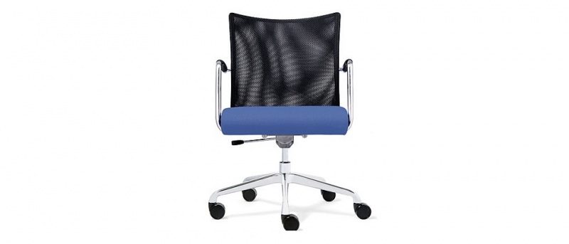 Spare profile, see-through mesh back conference chair. Available with fully upholstered backrest.