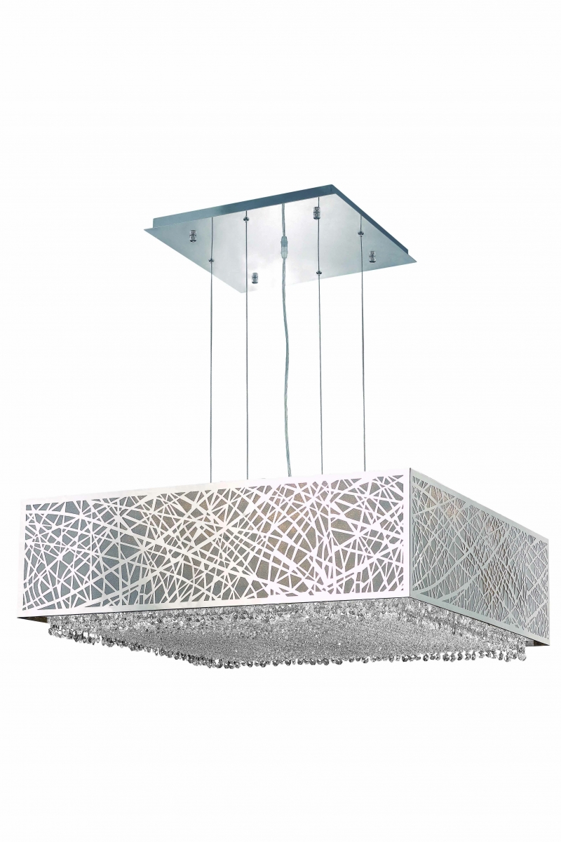 Hanging fixture with metal shade in chrome finish. Available with Spectra Swarovski crystals.