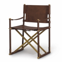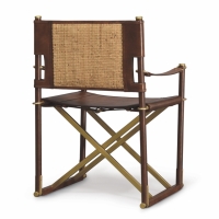 Stainless steel frame wrapped with cowhide leather. Seat, back and arms in cowhide leather. Rattan cane matting on outside back panel. Brass accents and rivets.