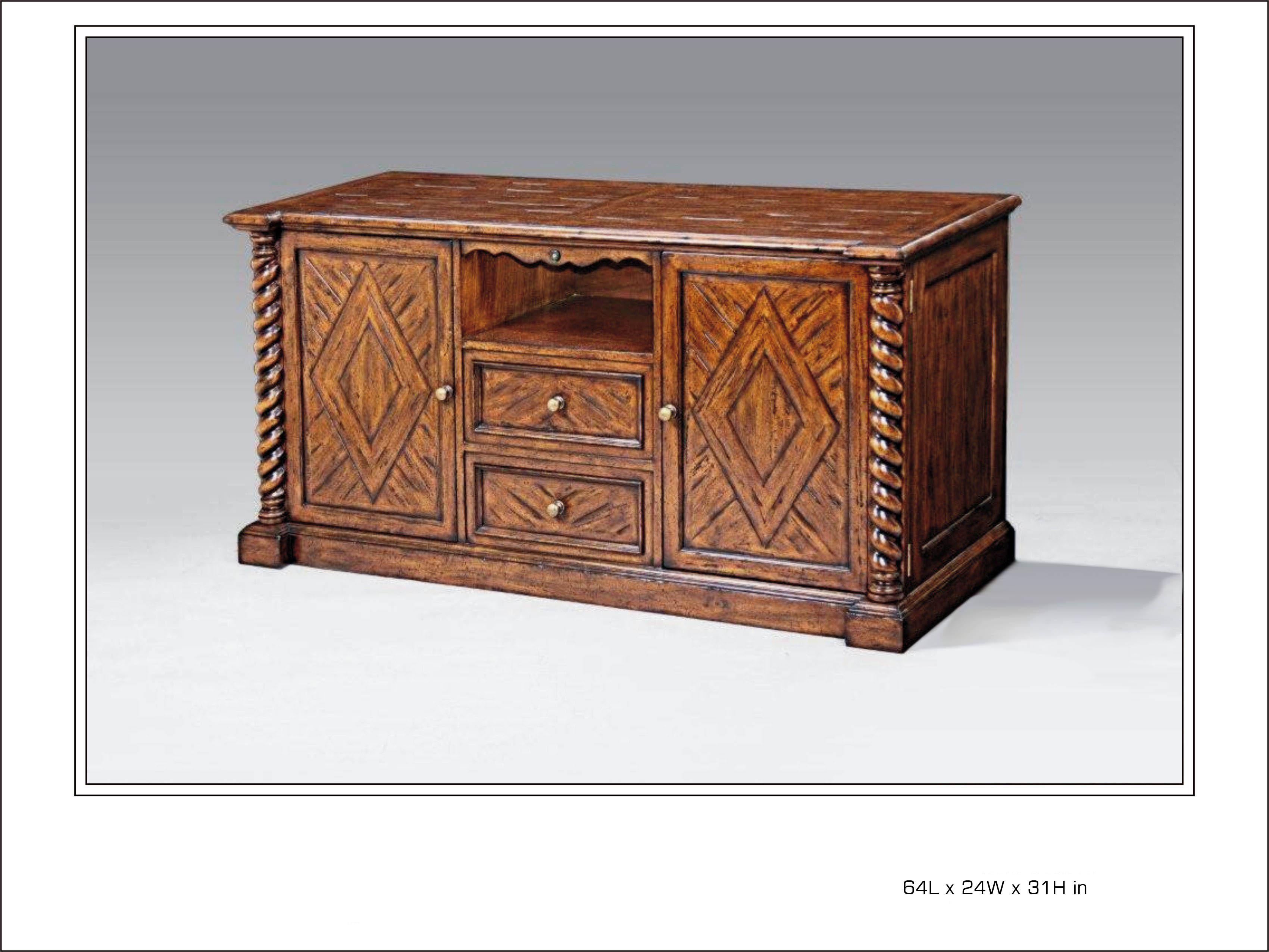 Hand Planed Heavily Distressed Plasma Stand with IR Receiver, Power Strip, Exhaust Fan and Vented Adjustable Shelves, Solid Brass Knobs