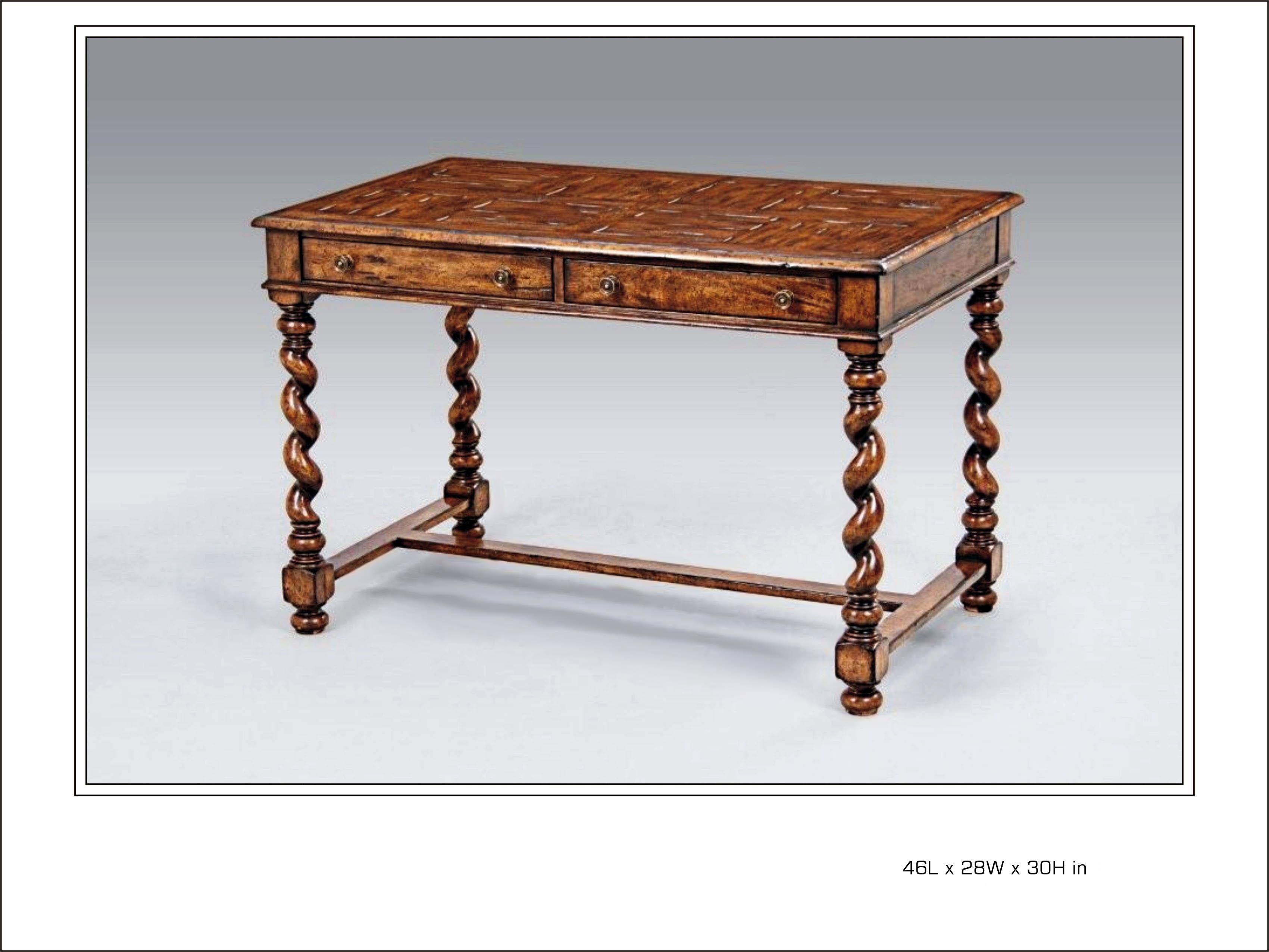 Hand Planed Heavily Distressed Parquetry Desk with Brass Knobs