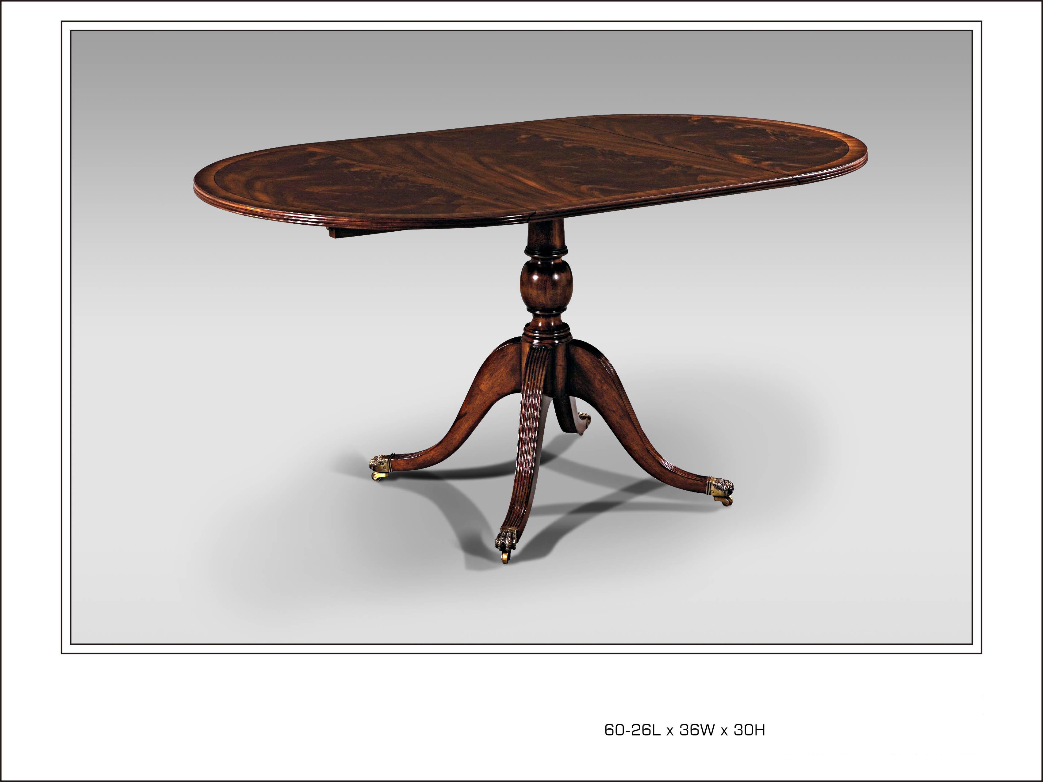 Crotch Mahogany Breakfast Table with Brass Castors with Drop Leaf Sides