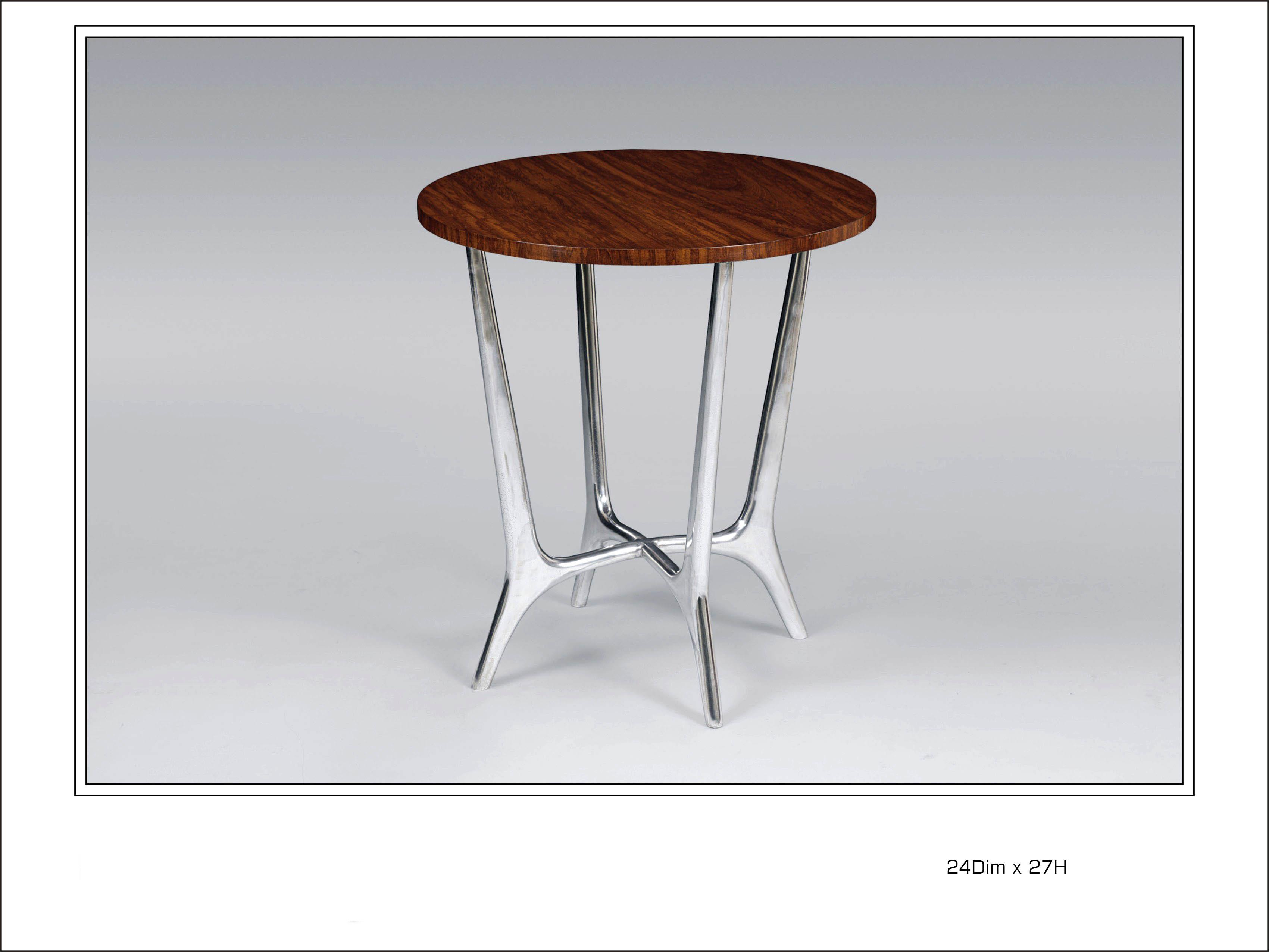 Polished Aluminum End Table with Exotic Veneered Top