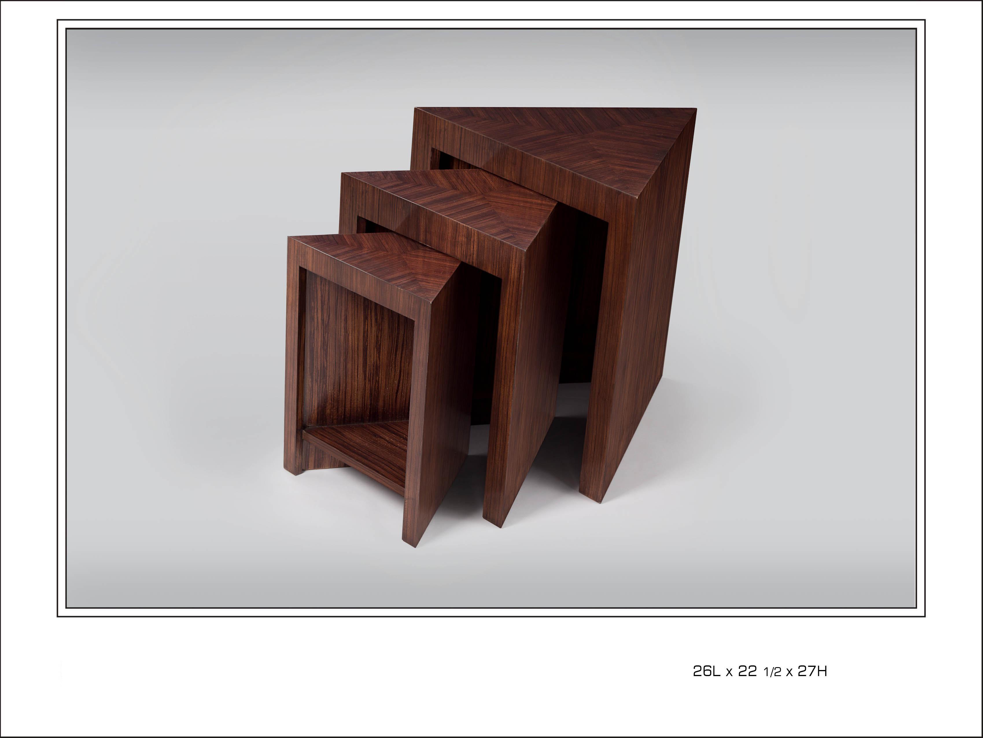Contemporary Zebrano Nesting Table. Set of 3.