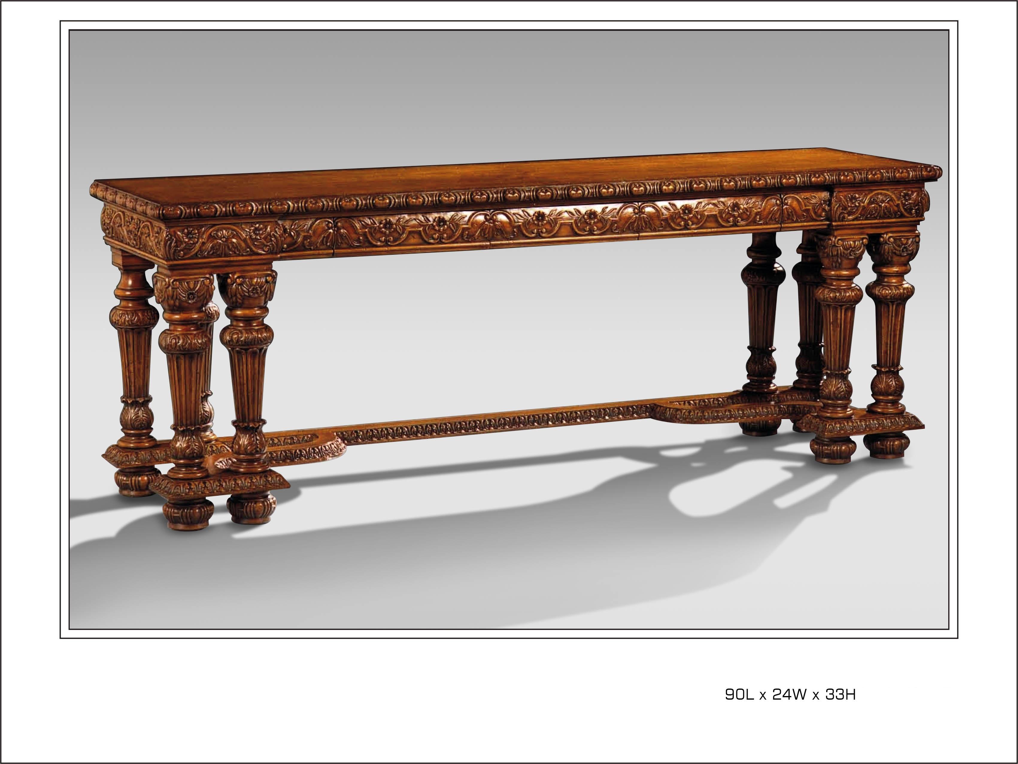 Burl Walnut 8 Leg Console Table