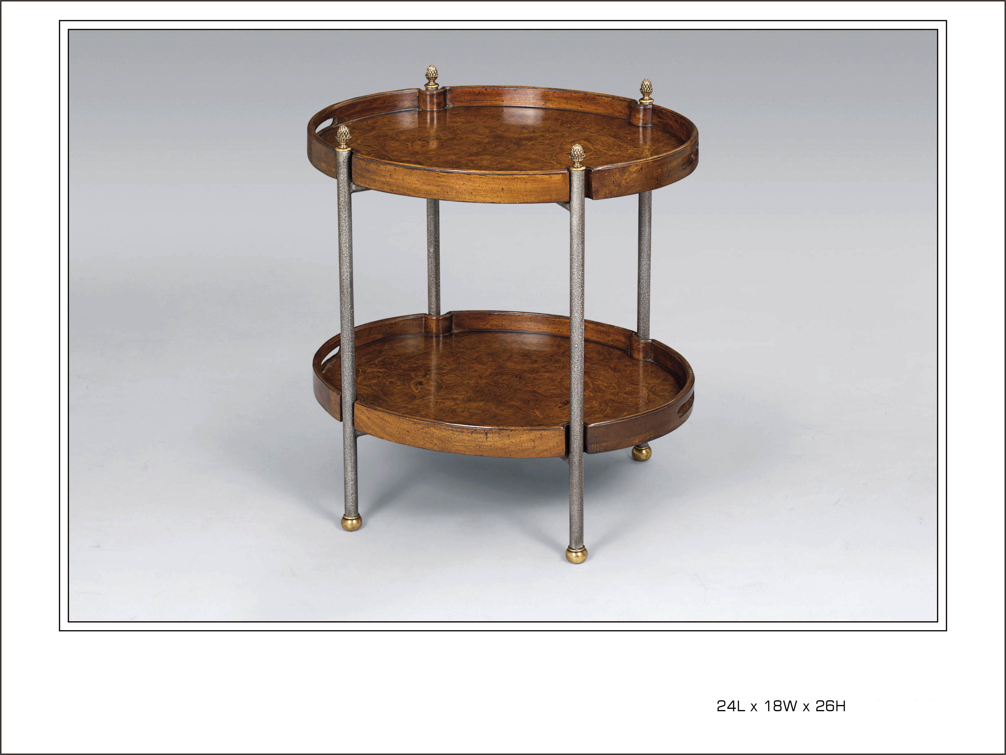 Myrtle Burl Butler's Tray with Antique Silver Frame and Brass Accents
