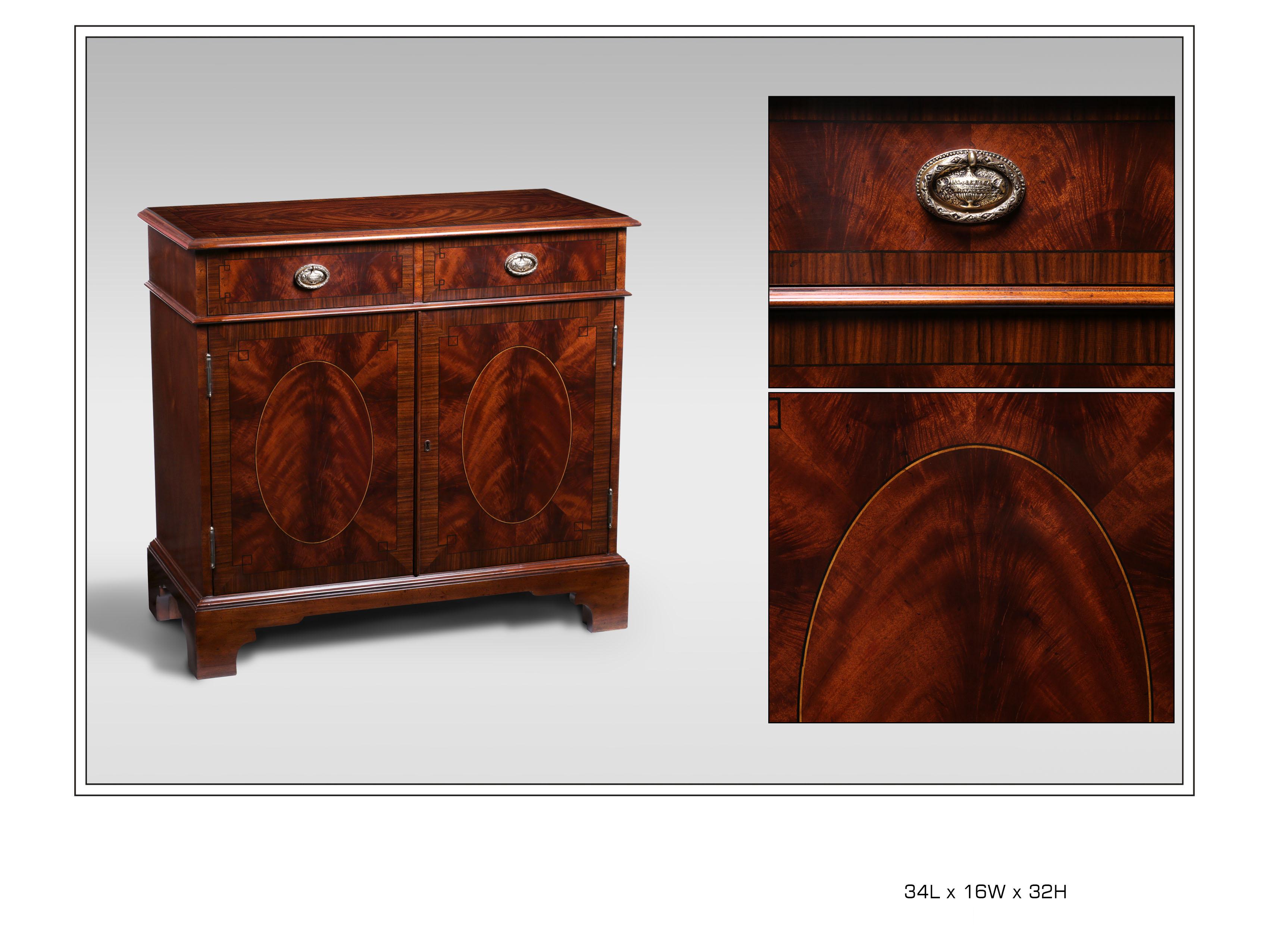 Crotch Mahogany and Rosewood Two Door Side Cabinet with Black and White Stringing and Brass Accents