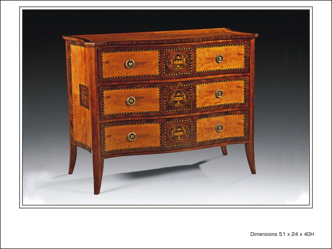 Yew Wood and Rosewood 3 Drawer Chest with Marquetry Inlay and Brass Handles