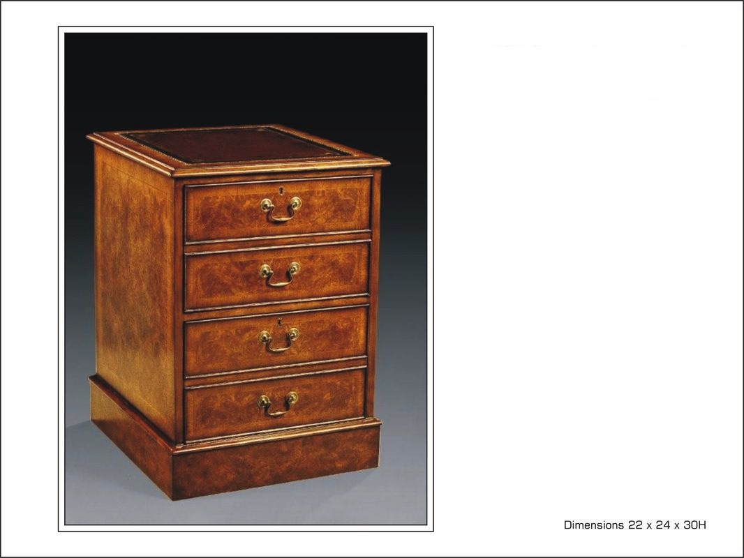 Burl Walnut File Cabinet with Antique Leather. Brass Handles. Available in Mahogany.