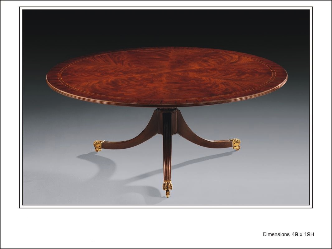Crotch Mahogany with Rosewood Banding Round Cocktail Table with Brass Castors