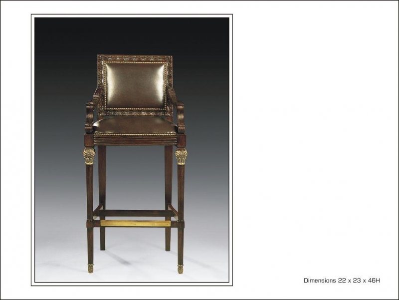 Regency style hand carved barstool. Beautifully cast brass capitals and feet a fluted leg and arm.