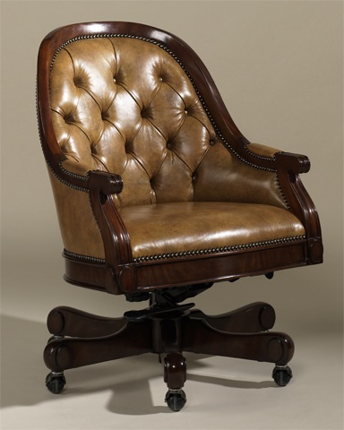 Tufted Barrel back with mahogany frame and Sienna leather. 30w 30d 41h