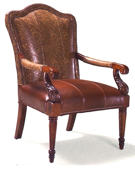 French style hand carved lounge chair. Tight back, Tight seat. Small nail-head trim standard.