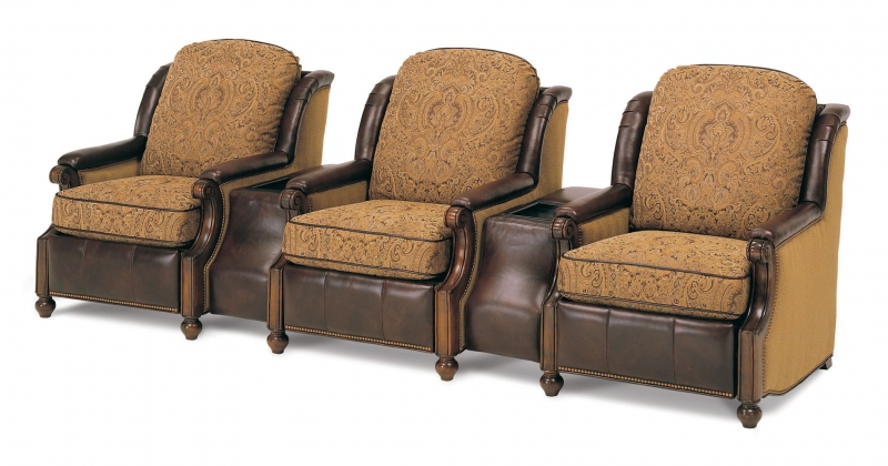 Exposed wood arm chair with motorized recline. Availalbe in various fabrics and leathers. Price per chair. Add 150.00 for end arm
