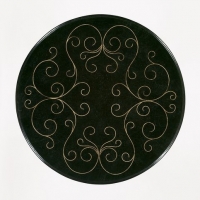 Made of select wood products and resin components. Fossil stone veneer top with brass design inlay.