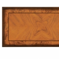 Selected solid woods with choice cherry veneers. Four-way book matched cherry veneer top with inlayed walnut frame. Cherry veneer sides, back panel, and pullout tray.