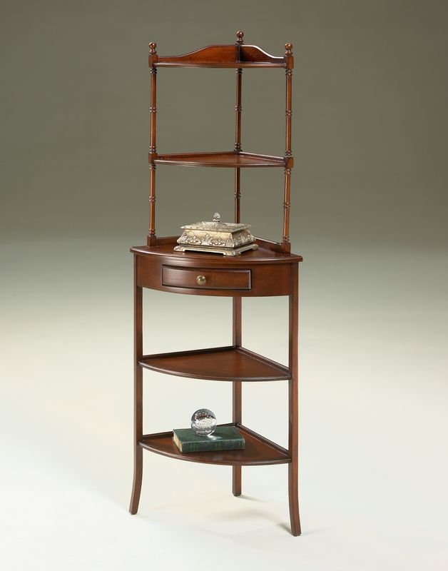 Selected solid woods and choice cherry veneers. Single drawer with antique brass finished hardware.