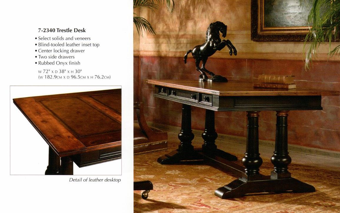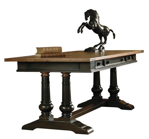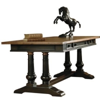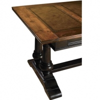 Tuscan style table desk with two tone finish and leather top.