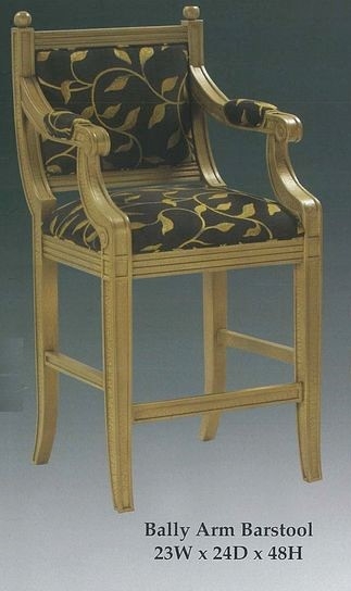 Barstool available in various finishes and fabrics. Available without arms.