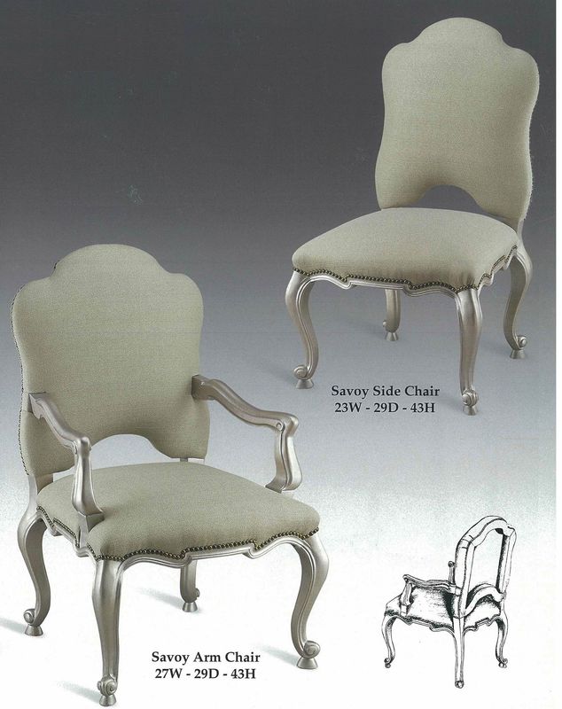 Savoy arm chair available in various finishes and fabrics. Available as a side chair.