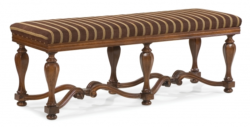 Exposed wood bench available in various finishes and fabrics.
