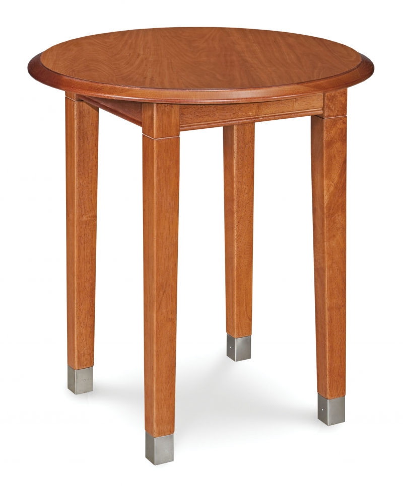 Round End Table Shown in Amber finish. Features a laminate top. Available in Amber, Cherry, Golden Wheat, Natural Cherry, Walnut or Windsor finishes only.