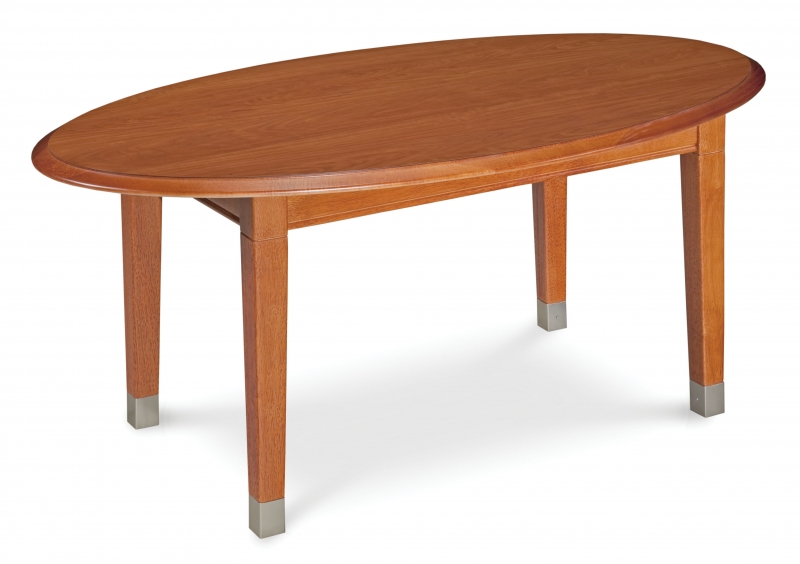 Oval Cocktail Table Shown in Amber finish. Features a laminate top. Available in Amber, Cherry, Golden Wheat, Natural Cherry, Walnut or Windsor finishes only.