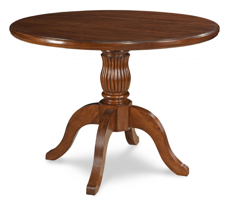 Round Dining Table Features a laminate top. Available in Mahogany finish only.